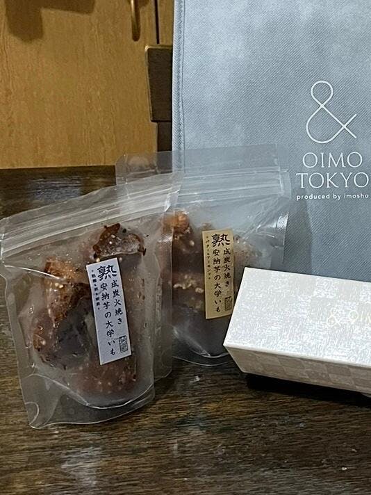 3ヶ月以上の熟成、さらに炭火焼きされた鹿児島県種子島産の安納芋のみを使用。グルテンフリーでからだに優しく、それぞれの素材を最大限に活かした大学いもです。